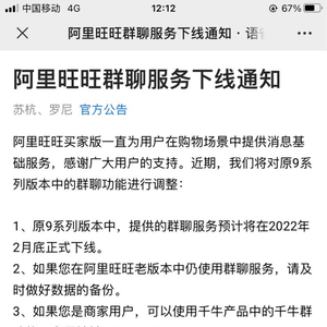 2、如果您在阿里旺旺老版本中仍使用群聊服务,请及时做好数据的备份。