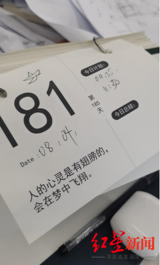 去年11月底,1996年出生的年轻设计师赵磊就曾在微信上和朋友表示,“想休息一阵,停下来,好好想想未来的路。都加了三年班了。”在一份工作日历上,他记下了自己当天的上下班时间,左上方他画了一只小鸟,日历配了文,“人的心灵是有翅膀的,会在梦中飞翔。”