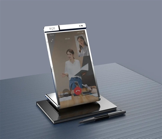 当对柔性屏进行第一段收纳时(仅外折),横向工作平台可轻松变身为立式会议和视频通话平台。
