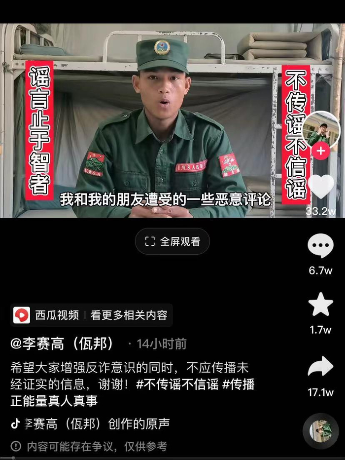 李赛高表示,自己和朋友是缅甸第二特区佤邦军政干校大专班的学员,仍在校读书,平时发布视频只是出于个人爱好,自己只是学生,跟亨利集团并没有任何关系,也没有做过非法之事。从未主动私聊网友,也未邀请网友非法入境,希望网友不传谣不信谣。李赛高称自己曾在中国接受过四年教育,对中国始终抱有感恩之心,不会做有损中国利益的事,更不会做违法的事。