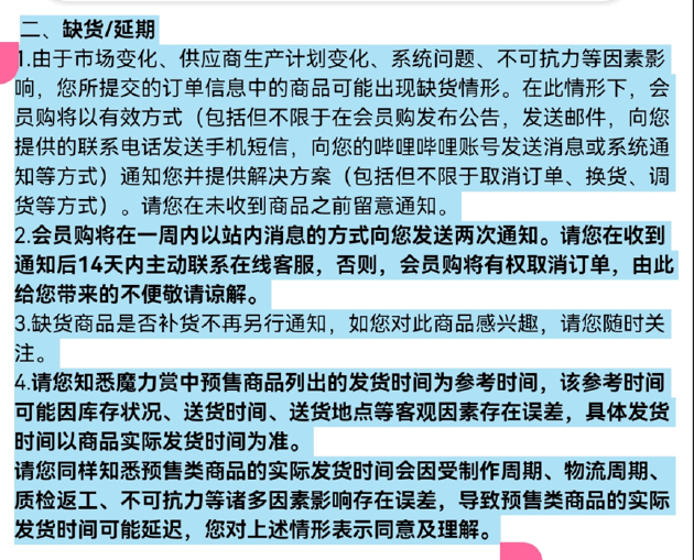 目前,魔力赏已抽中预售款商品页面会显示“到货时间待定”,而具体什么时候到货,就只能等通知了。而用户在支付时就已经勾选了相关协议,则被默认为同意。