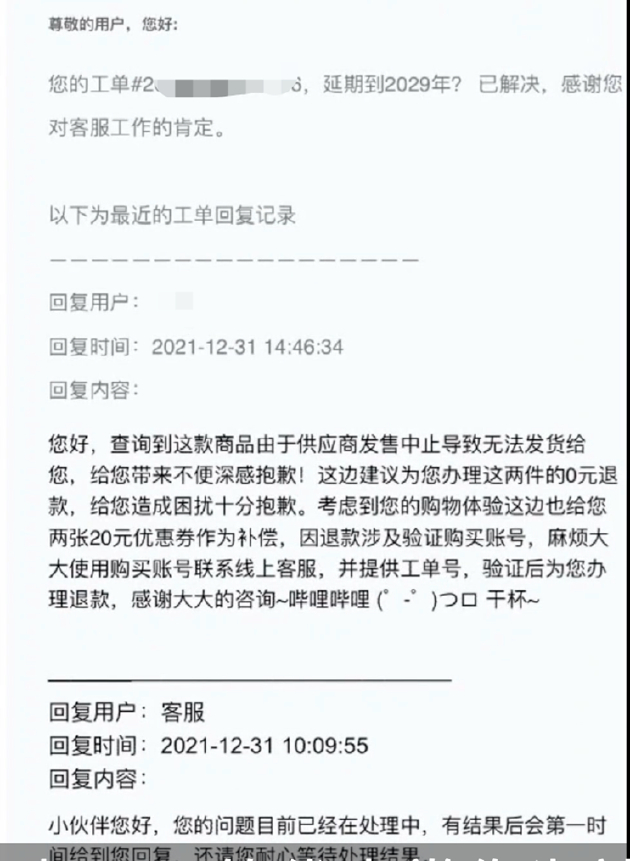去年10月,有报道提到,一位上海市民年初在B站上支付了七款商品的定金,而截至10月,只收到两款商品,其余的都既无法发货,又不能退款。平台给出的理由是:预售商品发货时间无法确定,而会员下单前已勾选同意《定金支付协议》,定金不可退是默认规则。
