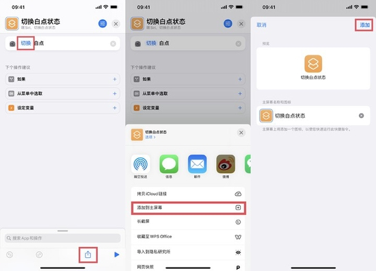 还可以利用快捷指令制作一个功能开关并添加至主屏幕上,无需进入设置也可以打开这些功能。