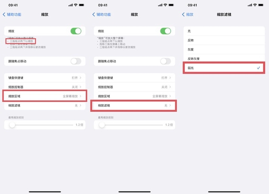 在‘设置 > 辅助功能 > 缩放’当中打开‘缩放’功能,将缩放区域改为‘全屏幕缩放’。