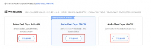 经常使用同一个浏览器的用户下载推荐的Flash版本即可,使用多个浏览器的用户可以安装Flash Player ActiveX版、PPAPI版、NPAPI版三个版本。不同系统版本的Flash Player可以在电脑中同时安装,不会出现不兼容现象。
