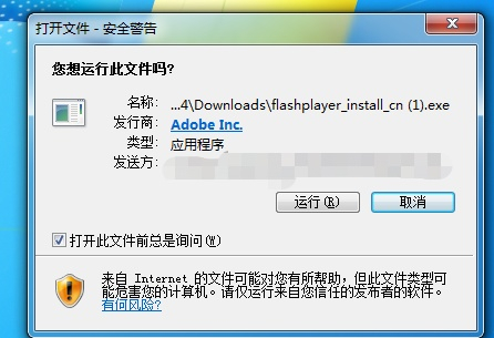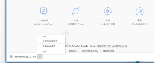 在下载页面中点击“立即下载”,将下载Flash中心安装包,下载完毕后点击“打开”即可进行安装。在此过程中如果出现安全警告,点击运行即可。