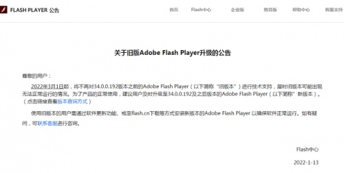 Flash Player是一款多媒体播放器,玩页游、看直播、拍牌照、上传照片都可能会用上它。Flash发布公告,3月1日后旧版本Flash Player将停止技术支持,正常使用可能受限,升级后可解决该问题。今天就来教大家如何更新Flash Player版本,希望对大家有所帮助。