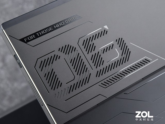 ROG幻X机身背部设计有支架,开合角度比较大,并且可以通过适当的阻尼力度控制在不同角度,可视范围更加灵活。ROG幻X整个机身采用了高密度铝合金材质打造,通体金属黑配色,并且在细节设计上极为考究,充分彰显了ROG这个品牌的个性。