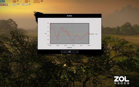 战场模式下,在1920×1200分辨率时画面平均流畅度为34fps,同样达到了基本运行游戏的需求,而想要以更加流畅的帧数去运行这款游戏的话,其实只需要把部队规模调到较低等级即可。