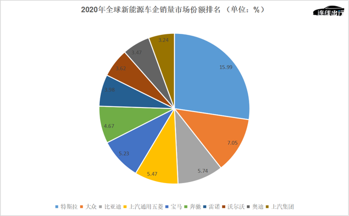 到了2020年,根据EV Sales发布的公开数据显示,宝马新能源车型全球全年销量总计为16.35万辆,位于当年车企销量榜的第五位,在它之前,特斯拉以49.95万辆排名第一,大众、比亚迪和上汽通用五菱分据二至四位。