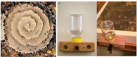 图4。 澳大利亚无刺峰的天然蜂巢(左)和本实验设计的人工蜂巢(中、右)。图片来源:J。 Agric。 Food Chem。