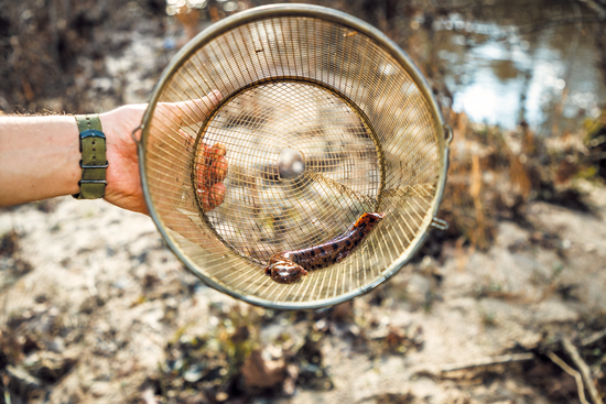 纽斯河泥螈在水下生活,到地面上就显得笨拙。它们只会在昆虫恰好游过身边时捕食。