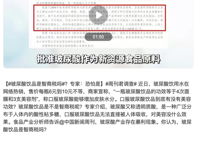 从中国新闻周刊一期短视频节目中看到,有专家称口服玻尿酸无法直接被人体吸收,没什么美容效果。
