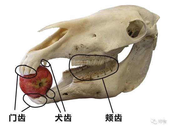 马的牙齿和人类一样,分为颊齿(臼齿和前臼齿)、门齿和犬齿三部分,长排的颊齿齿列让马长成了 “大长脸”。