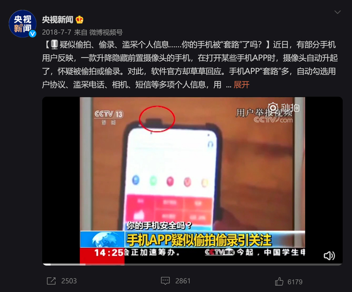 不过有意思的是,直到今天还有一些用户会怀念升降式摄像头,倒不是完全因为‘真·全面屏’的形态,反而是由于一个‘无心之举’。因为升降式的特殊设计,手机在调用前摄时必须将摄像头升起,所以当某些软件想要偷偷调用摄像头时,这些‘偷拍’行为就会暴露无遗,而对于用户来说,升降摄像头可谓是从物理层面保护了个人隐私。