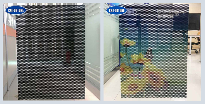 这种贴纸被称为‘单透贴’,它形象地还原了手机 OLED 屏幕的工作原理,贴纸上的图案就相当于 OLED 屏幕上无数个发光像素点。当贴纸上的打孔越多,图案面积就越小,也就代表屏幕上的像素密度越低。屏下摄像区域对应的屏幕就是利用了这种特性,当显示黑色时(屏幕不发光),就相当于从车外透过贴纸(纯黑色面)看车内,由于布满无数开孔,又没有其他色彩信息干扰,所以屏幕透明度自然就提高了。
