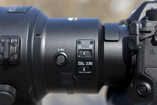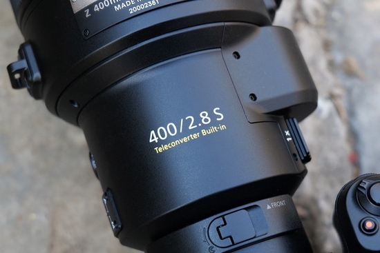 第三,尼康为尼克尔Z 400mm f/2.8 TC VR S镜头内置了1.4倍增距镜,通过镜头尾部的拨杆,可以在1倍和1.4倍之间进行切换。开启增距镜后镜头焦段可提升至560mm。对于生态摄影和体育摄影来说,内置增距镜不仅节省了器材成本,在拍摄时省去了安装增距镜步骤,让拍摄时取景也变得更为灵活。