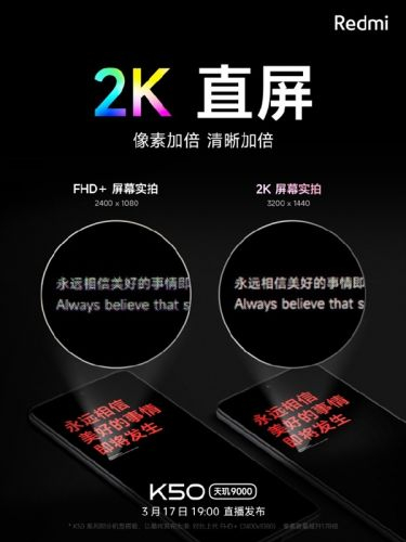 不过3月17日即将发布的Redmi K50系列能满足这些用户所有要求,今天@Redmi红米手机官微正式宣布K50系列将搭载顶级的三星2K直屏,这也是Redmi品牌首次配备2K规格的屏幕。