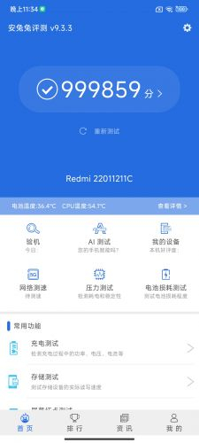 从结果来看,Redmi K50 Pro的安兔兔跑分为999859分,与一众骁龙8机型的跑分不相上下,这样也可以看出它的性能释放能力非常出色。