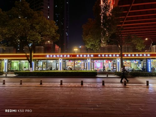 而在夜晚的拍照场景中,1亿像素的大底主摄和OIS光学防抖更是发挥了强大的优势,能保持良好的对于复杂光线的控制力,画面亮度较高,同时画面中灯光的高光部分也没有严重的过曝,色彩比较明艳,给人的第一观感不错。尤其在打开夜景模式后,画面的动态范围得到进一步提升,极暗处的细节也能得到显示,足以满足日常的拍摄需求。