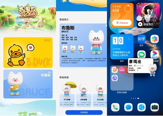 当我们选择一只宠物后,就可以在手机桌面看到它了。值得一提的是,桌面宠物是根据真实生命体生活习性设计的,在24小时中,宠物也会起床、睡觉、娱乐,还能和用户互动,宠物甚至还会对天气、节假日、步数、电量等内容作出提醒。