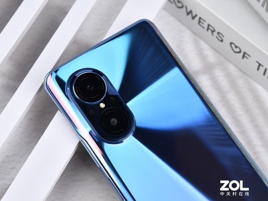 翻看背部,华为 nova9 SE相机模组沿袭了nova系列经典的星耀环设计,对称式的相机模组营造了一种秩序美感。手机背壳有冰晶蓝、贝母白、幻夜黑三种配色,此次笔者拿到的正是冰晶蓝版本。