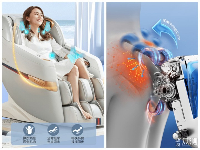 3D机芯,具备标准的揉捏、推拿、按压,还会有叩击、拍打、拉伸等方式。