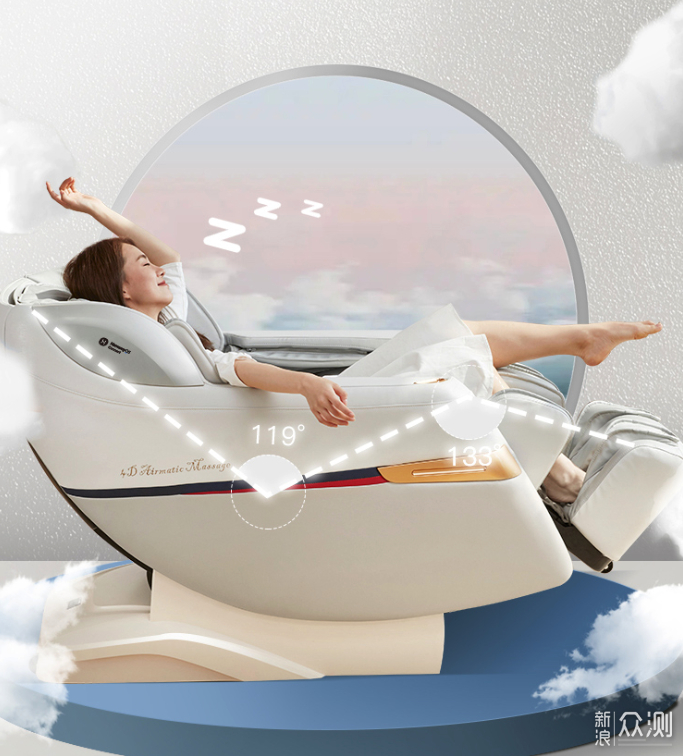 日常还可以在它里面睡觉, iRest按摩椅是怀抱式设计, 而且它还提供了一个零重力模式, 身体与脚处于一个126°±7°度位置, 正好是身体处于一个重量均匀分布的状态, 能够有效减少脊椎压力, 睡觉睡的更香。