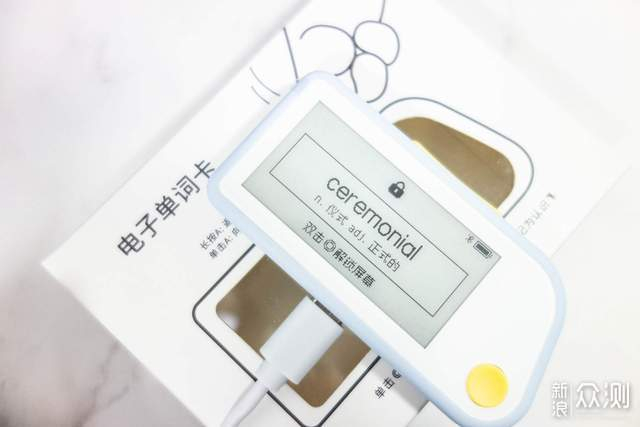 它小巧趁手,采用了2.13英寸的墨水屏,整机仅重30g,但是却有着100天的长续航,充电则是通过底部的Type-C充电口。喵喵智能电子单词卡的体积也很小,平时揣在兜里,或者放在小包里都可以。