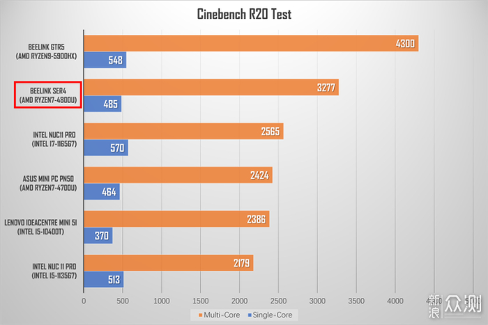 在更早版本的Cinebench R20测试中,SER4的CPU多核得分同样高于NUC。