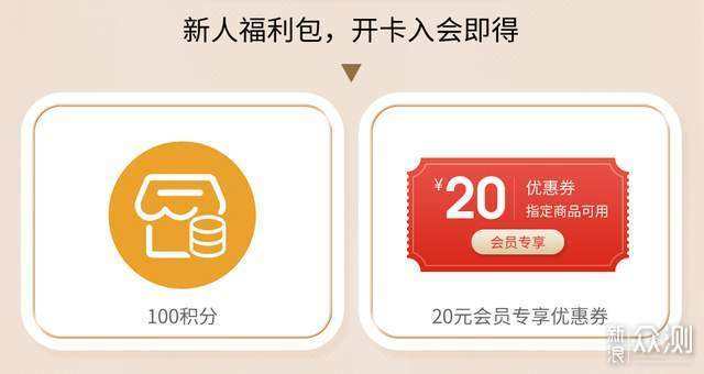 福利一:新人开卡入会,送100积分+20元会员专享券