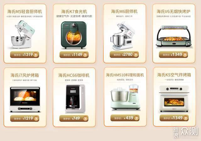 3月23-25日期间,海氏M5轻音厨师机1319元、海氏K7食光机1149元、海氏M6厨师机2780元、海氏V6无烟快烤炉1349元、海氏i7风炉烤箱1219元、海氏HC66咖啡机749元、海氏HM510料理和面机439元、海氏K5空气炸烤箱1349元,有需要的不要错过。