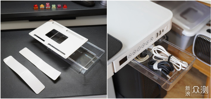 质量很好的桌底小抽屉,我把它粘在桌子下面专门收纳各种不同接口的数据线,抽屉上方就是充电口,随手就能拿出来充电,这种抽屉有两三块钱一个的,但我建议购买,质量特别差,还有难闻的味道,估计是再生塑料做的 ,为了健康着想还是买个好点的吧。