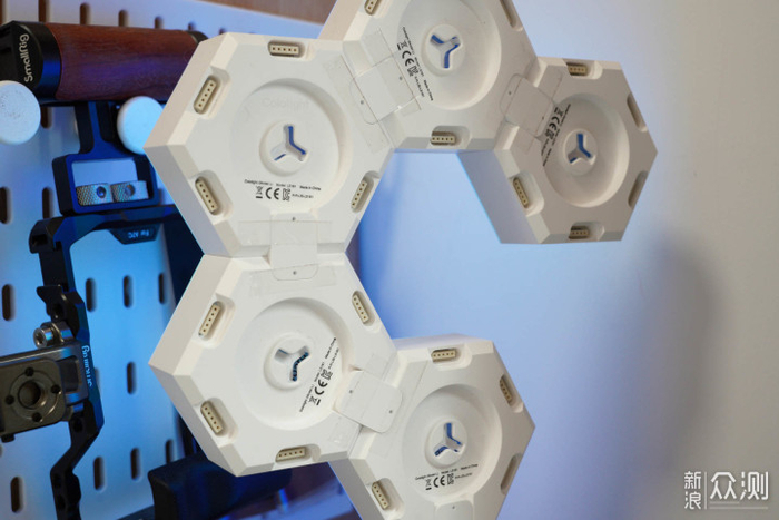 Cololight的这款量子灯做工还是挺不错的,六边形的单个灯组可以无线组合,利用附带的卡口就能组合出不同的形状,每个灯里面有19个灯珠,可以显示1600万色RGB灯效,灯效模式下色彩过度自然,磨砂灯罩让光线不那么刺眼,app中内置了大量有趣的灯效组合,可以键选择,也可以自己DIY,可玩性很强。
