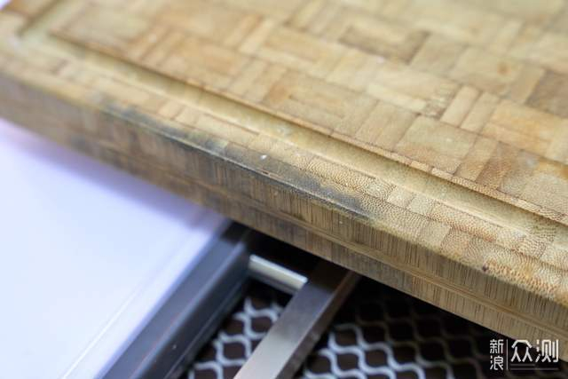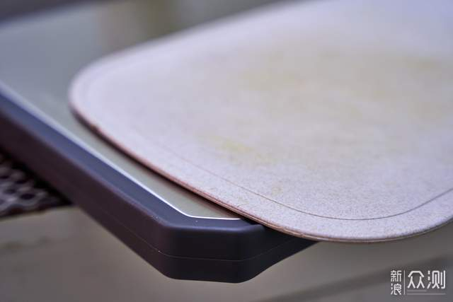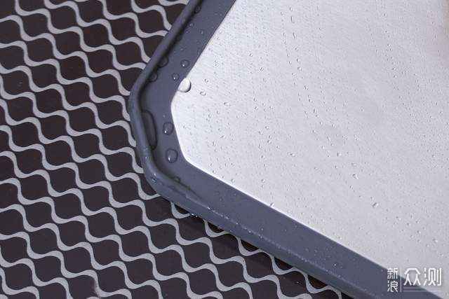 首先是噪音控制,我对这个特别敏感所以在决定使用康巴赫之前,把菜板自身减震和刀刃划过不锈钢板面的噪音都纳入了考量范围。用过之后才知不错,康巴赫一方面对于菜板做了防滑橡胶包边,而且四角的包胶都高于板面,形成了天然的减震垫脚。另一方面,菜板内部的夹层填充十分到位,刀刃划过不锈钢板面没什么震动和声音。