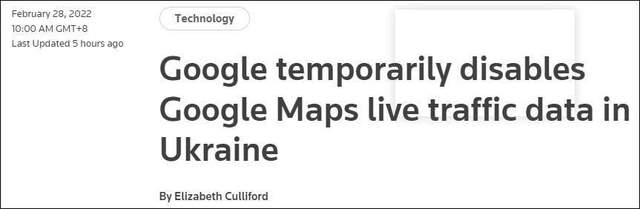 乌一方,支持者谷歌在2月27日关闭了对俄罗斯的实时地图导引系统,使得俄罗斯机械化步兵与坦克在迷路时失去了准确的导航信息。苹果公司也禁用了乌克兰的交通和实时事件功能,保护在乌居民。