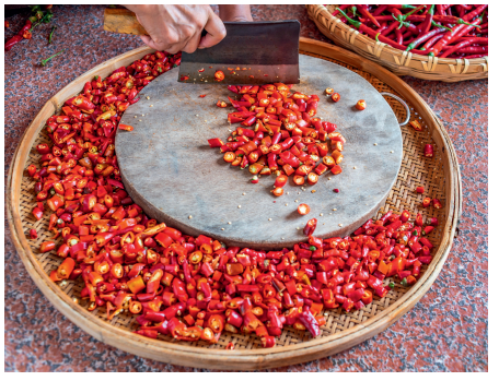 中国南北的自然分界线是秦岭至淮河一线,而南北食辣风格的分野大致与此相同——秦岭以南地区,辣肴佐料主要以辣椒酱为主;秦岭以北地区,则以辣椒粉为主。