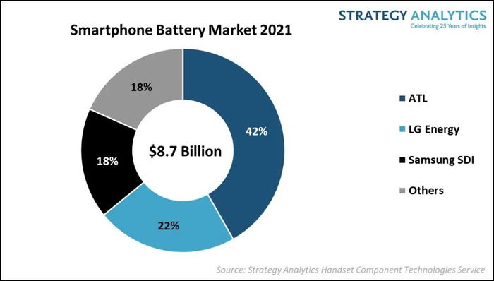 Strategy Analytics:2021年全球智能手机电池市场规模为87亿美元
