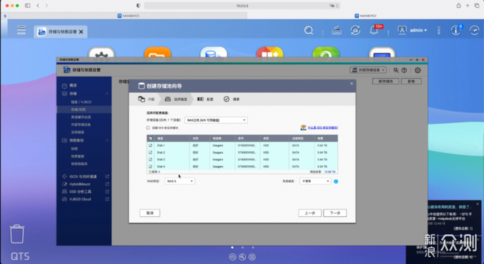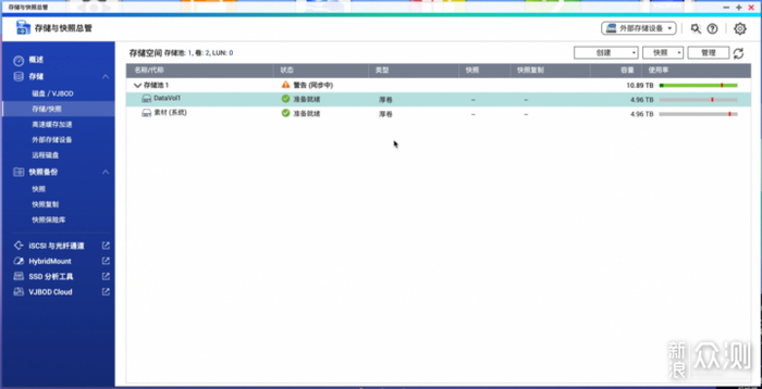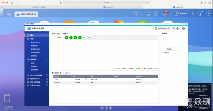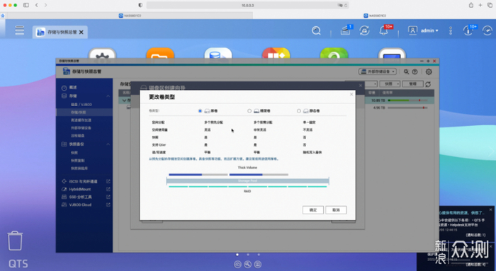 说完性能,我们来说说TS-464C的文件系统。打开QTS,使用向导首先会引导创建存储池和卷。这个很好理解,就跟硬盘买回之后格式化和分区比较相似的概念。