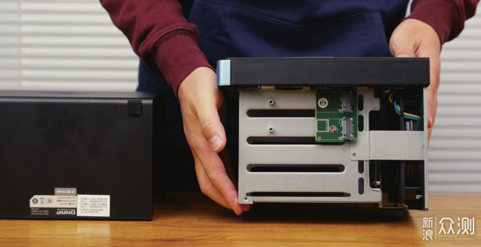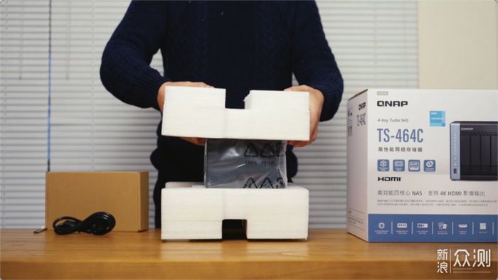 我们取出被泡沫包裹的NAS本体,去掉塑料袋,真容显现,跟商品图完全一致的质感。