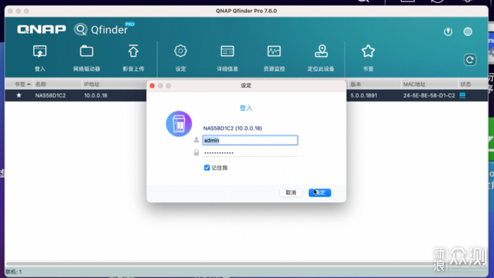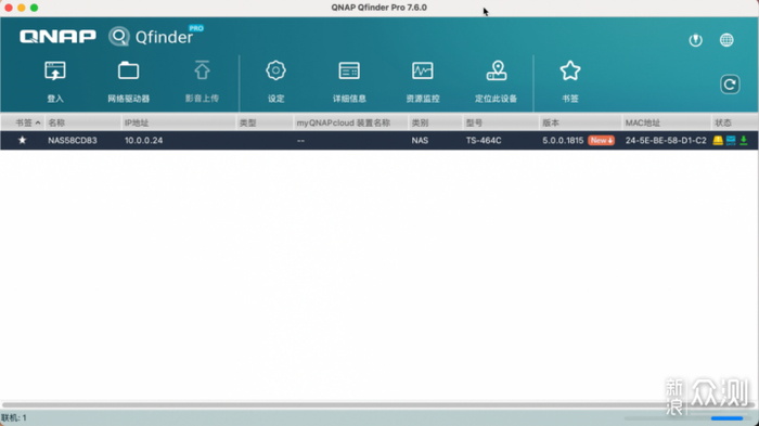 打开Qfinder之后,会自动显示位于同网络中的NAS.