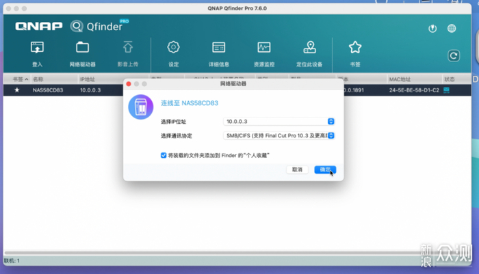 我比较推荐在Qfinder中直接点击网络驱动器。ta会自动选择你的操作系统对应的通讯协议。记得勾选上添加到个人收藏。