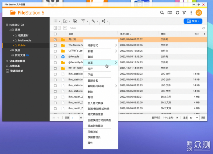 而对于NAS中的文件,直接在fileStation中右键就可以分享