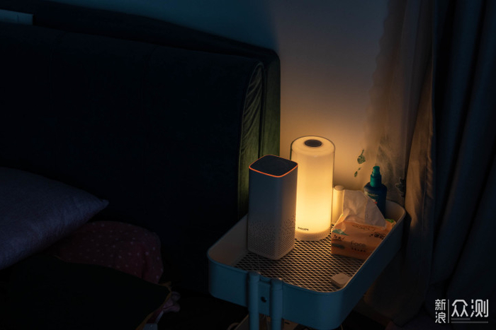 这是另一边的飞利浦智睿系列的床头灯,这款灯是自带灯泡,是我用过的智能台灯里面功能最多的一款,用来做床头灯、氛围灯、小夜灯都完全没问题。