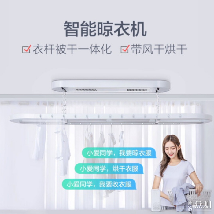 于是到这套房子买升降晒衣架的时候,直接就入手了绿米新出的热风烘干款升降晒衣架,一次性解决我之前烦恼的问题。那首先第一个,用担心遥控器的问题了,年轻人跟老人都可以在路过客厅去阳台的时候喊一声小爱同学,我要晾衣服,它就慢慢下降了,晒好了再喊一声小爱同学,它就会自己往上升。
