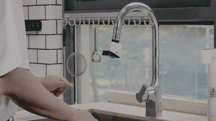 如果需要开启长时间出水,把手放到右边侧面,就是开启长出水模式,再把手放到侧面一下,就是关闭,操作起来非常轻松,灵敏度极高。