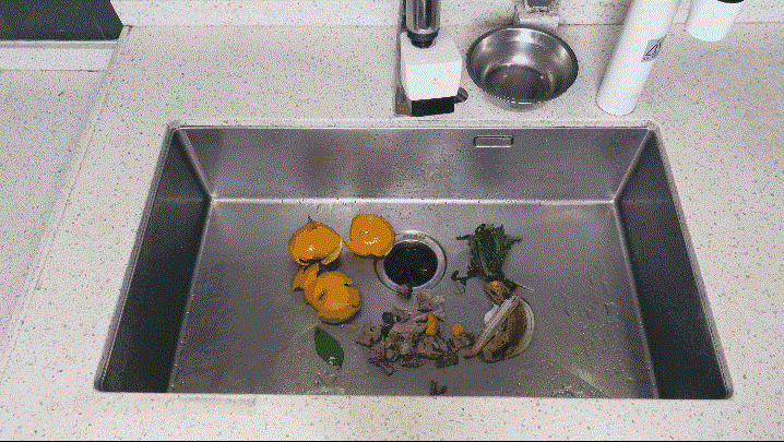 这么多垃圾,按照以往的操作是如何呢?塞入处理器腔体内,盖盖子,打开龙头,按下处理器开关,在旁等待并根据声音(需要熟悉使用才能做到)判断处理结束,关水,再去关闭厨余处理器。