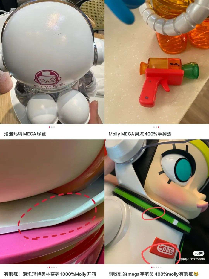 MEGA珍藏系列主要以盲盒头部IP“Molly”为形象,作为泡泡玛特最资深、人气最稳固的IP,Molly的IP影响力足够深厚,帮助MEGA珍藏系列顺利打开市场,但盲盒的品控问题却在高端玩具身上重演。