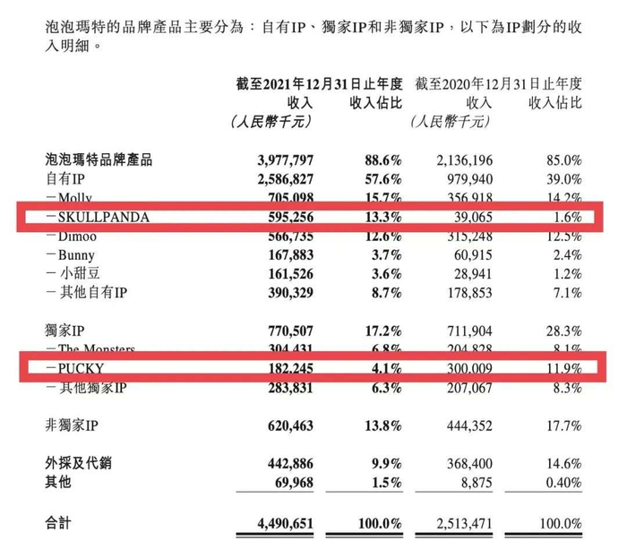 SKULLPANDA和PUCKY的业绩变化