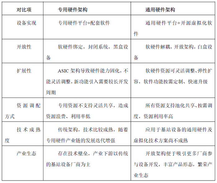 2种架构在硬件实现、开放性、扩展性、资源调配方式、技术成熟度、产业生态等方面均存在各自的优劣势,如表1所示。